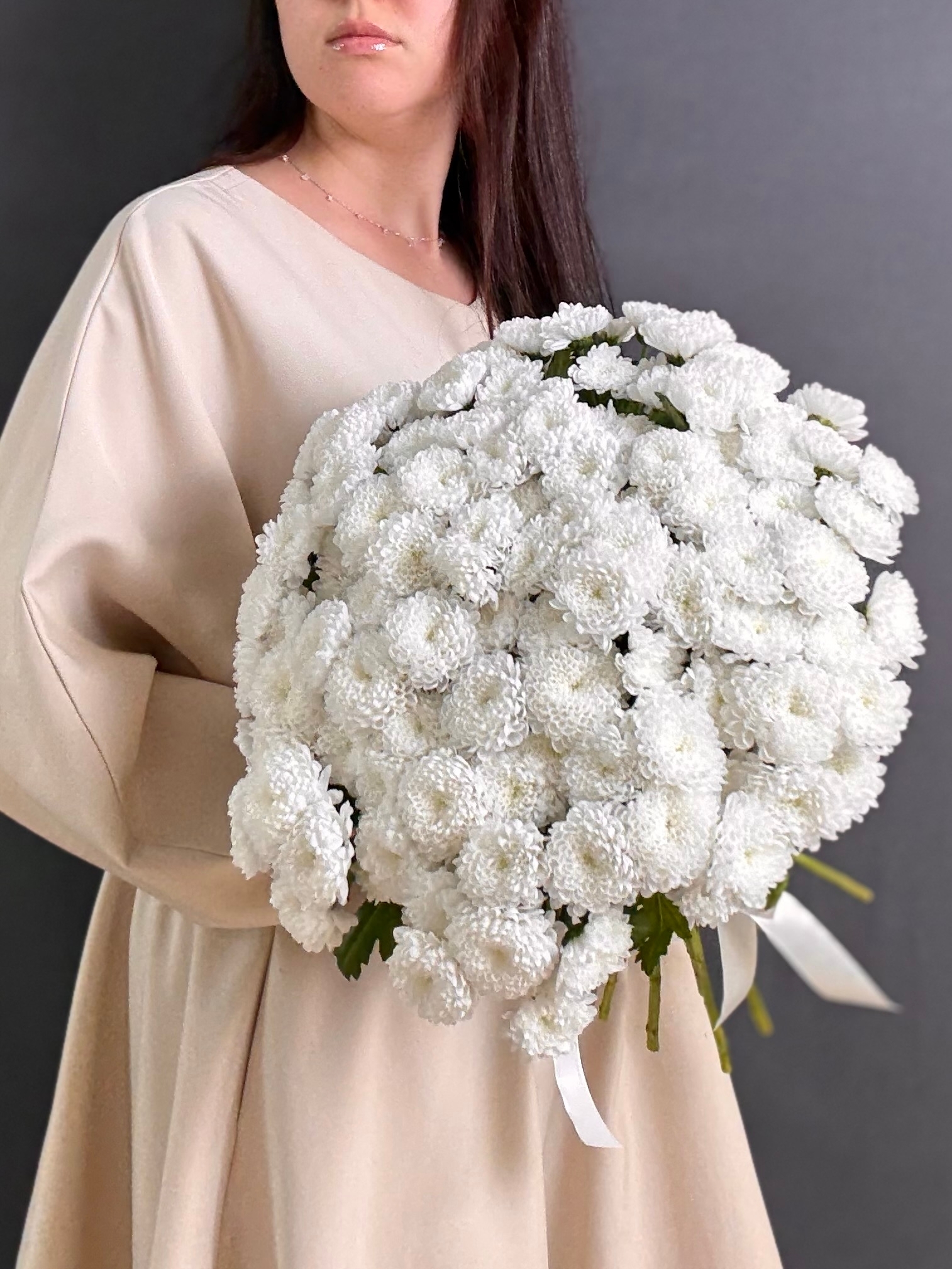 Представьте себе легкое, невесомое облако, окутанное морозной свежестью. Именно такое впечатление дарит наш эксклюзивный букет из 21 белоснежной хризантемы сантини. Каждый цветок – словно крошечный снежный комочек, собранный в изящную композицию, которая принесет в ваш дом атмосферу спокойствия и умиротворения