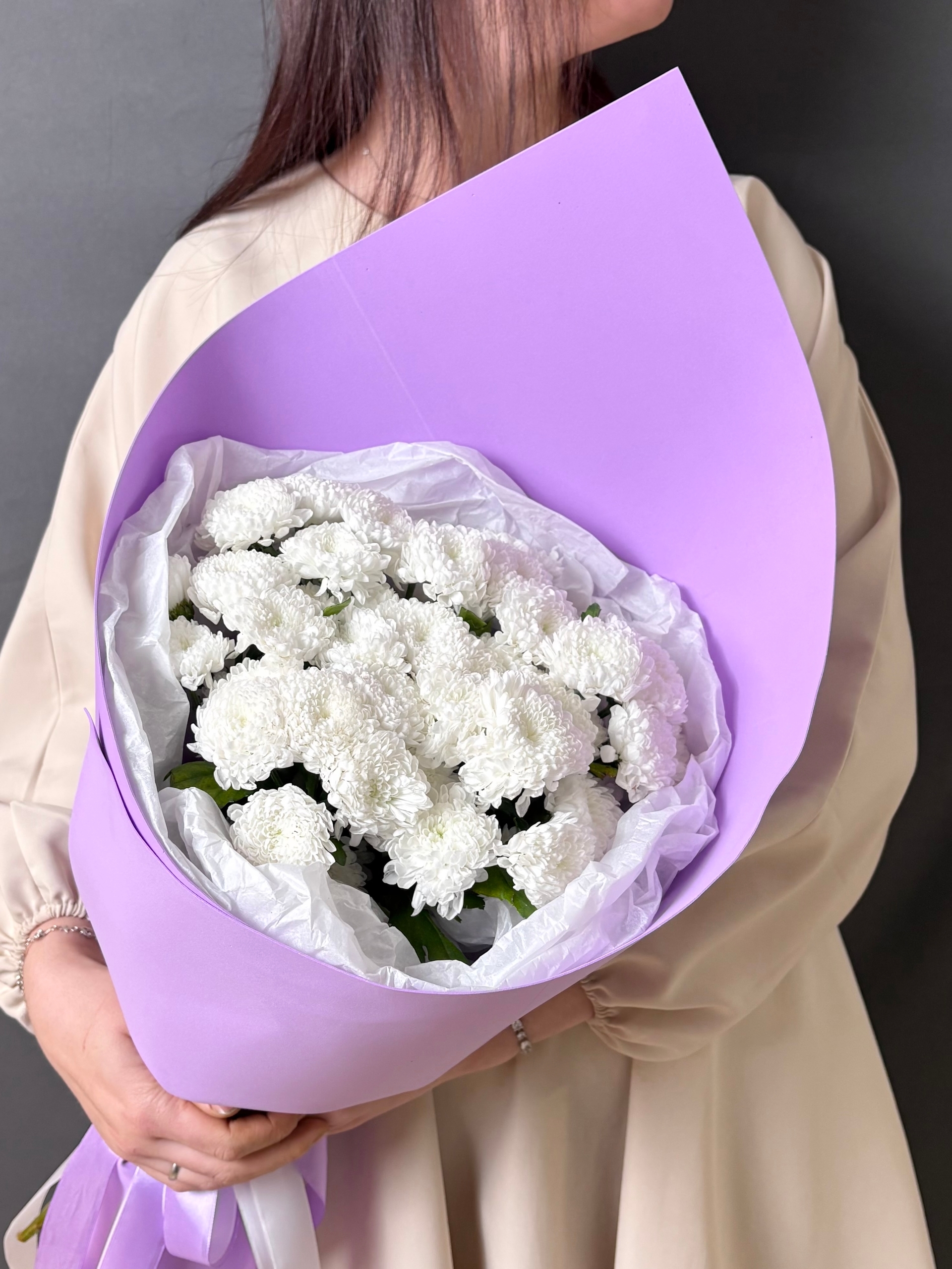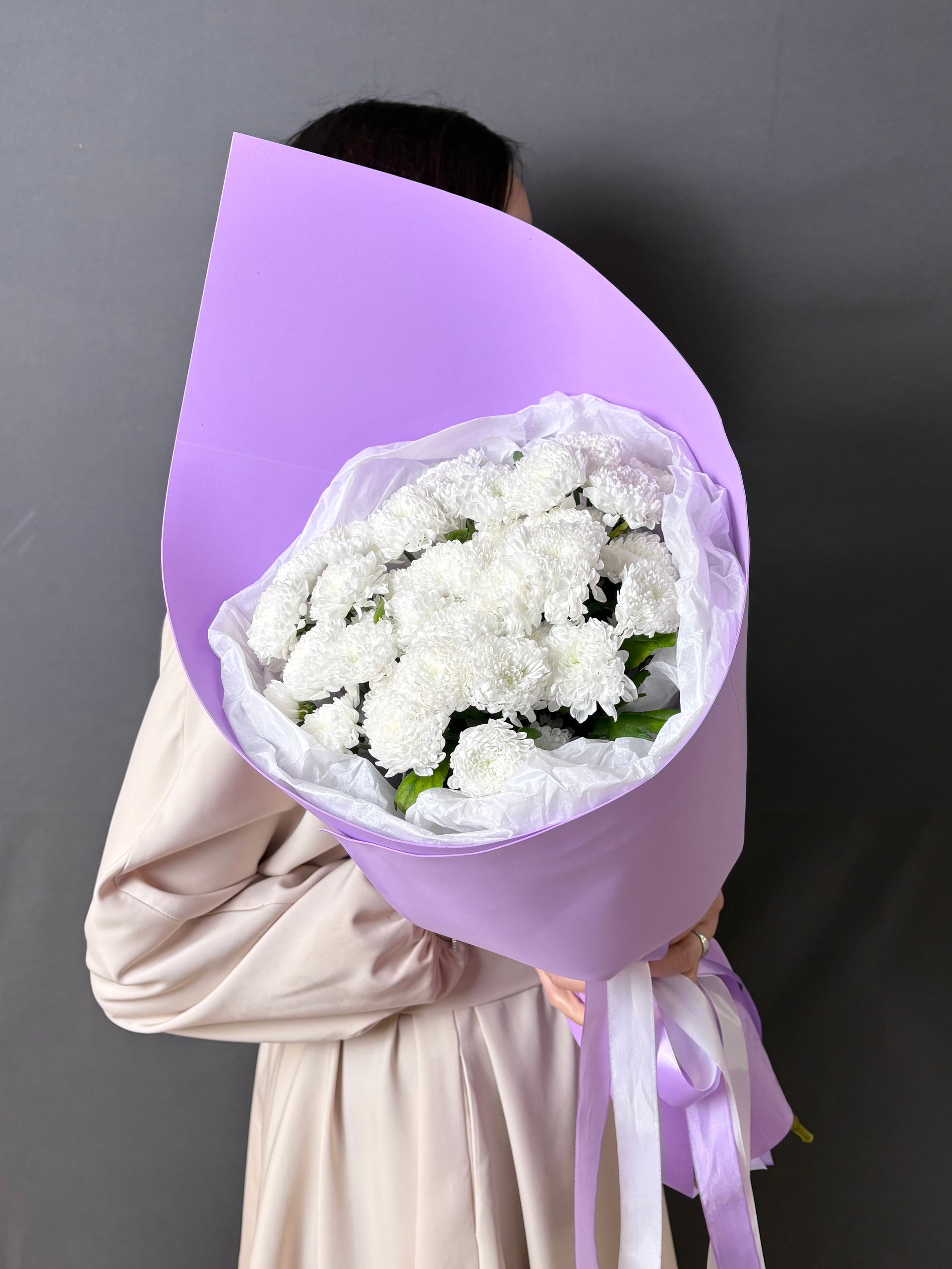 Белоснежный цвет этих хризантем символизирует искренность и невинность, а их кустовая форма добавляет букету пышности и объема. Каждый цветок, словно маленький ангел, готов донести до получателя ваши самые теплые чувства.