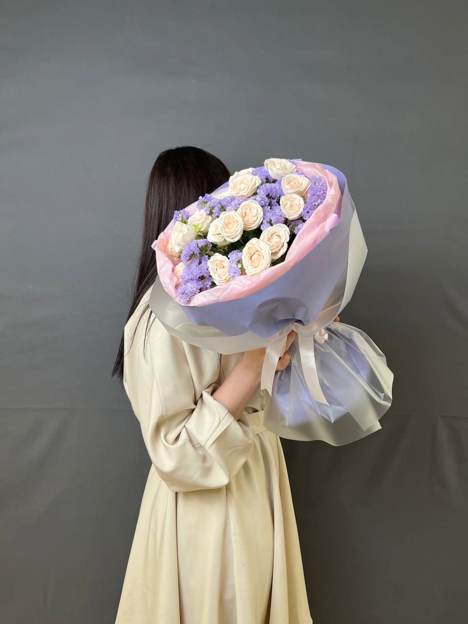 Погрузитесь в магию "Сиреневой ночи" с нашим авторским букетом. Мягкие, бархатистые кустовые розы, словно звезды, мерцают в объятиях нежной сиреневой статицы, напоминая о тихом шепоте летней ночи. Каждый цветок бережно отобран и собран с любовью, а стильная упаковка добавляет завершающий штрих элегантности. Этот букет – не просто подарок, а целая история, рассказанная языком цветов.