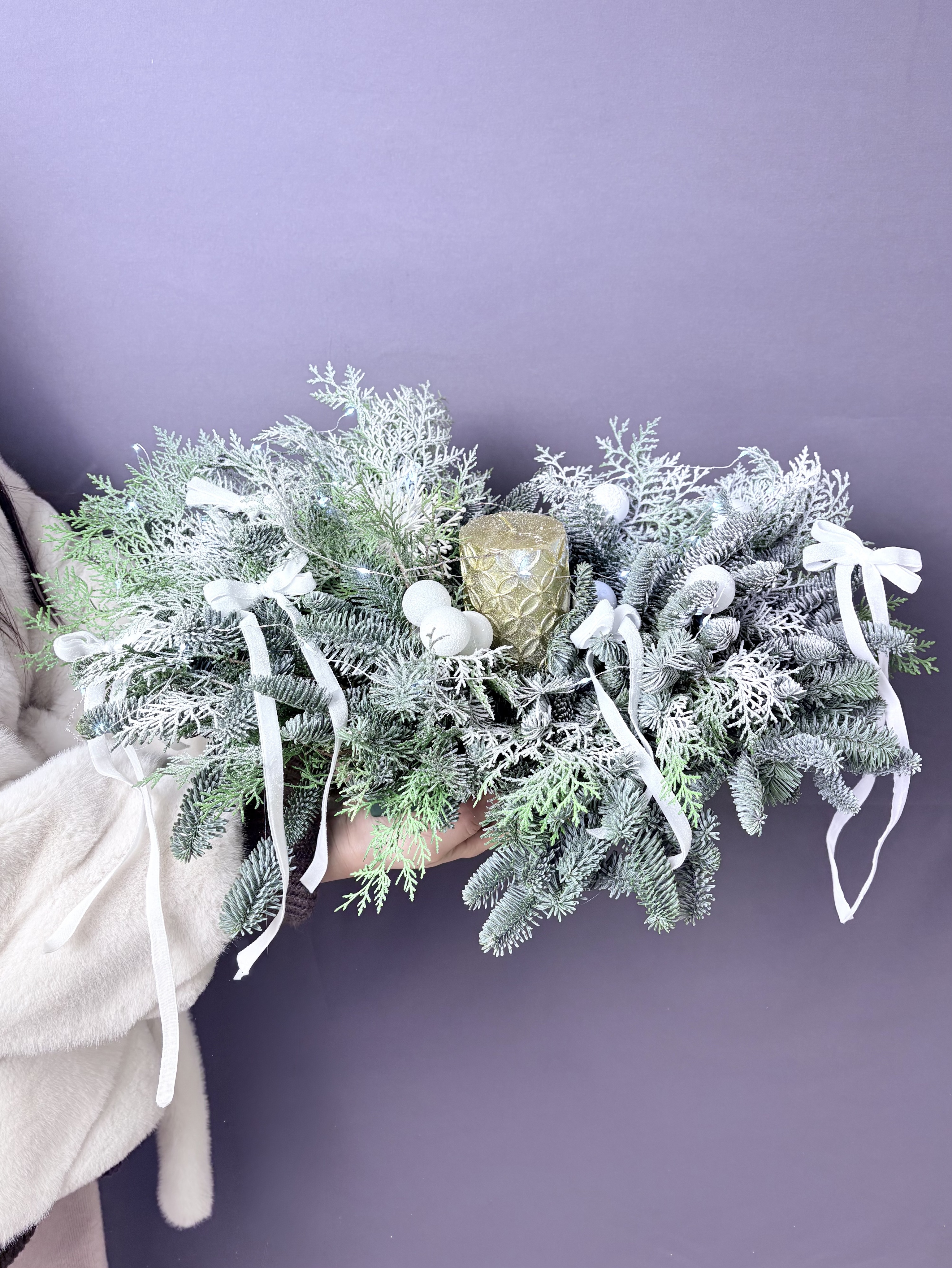«Снежная Зима» — идеальный выбор для тех, кто хочет создать в доме атмосферу зимней сказки, наполненную светом, теплом и изяществом. Такая композиция станет прекрасным украшением праздничного стола, камина или подоконника, привнося в интерьер нотки элегантности и волшебства.