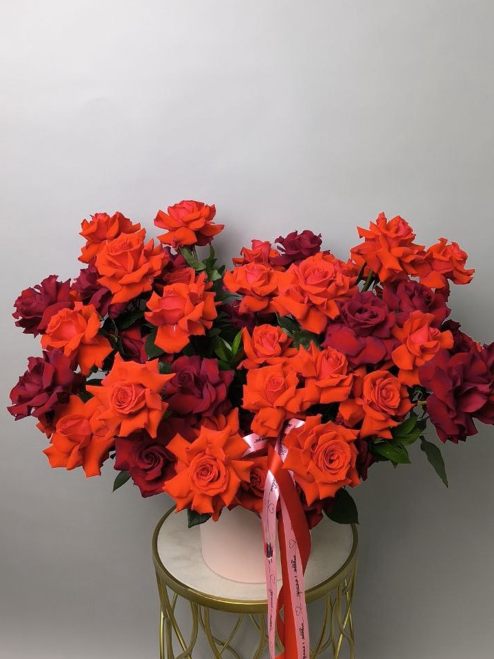 Представляем вам авторскую композицию, где каждый лепесток говорит о роскоши и безупречном вкусе. В этой шикарной коробке расцветает 51 французская роза, гармонично сочетающая в себе глубину алого цвета. Это не просто букет, а настоящее произведение искусства, способное покорить сердце.